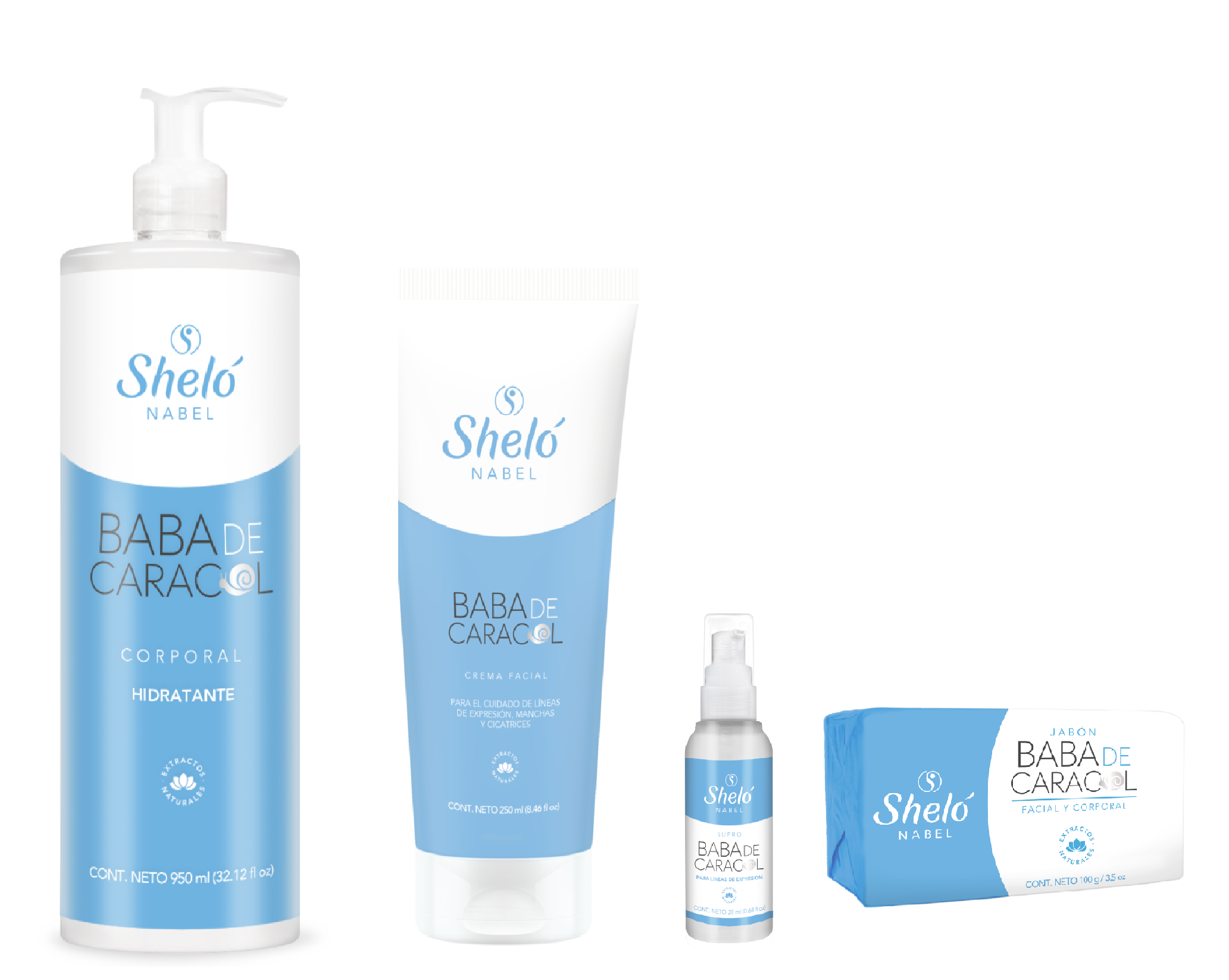 Incluye 1 Baba de Caracol Corporal + 1 Baba de Caracol Facial + 1 Suero de Baba de Caracol + 1 Jabón de Baba de Caracol